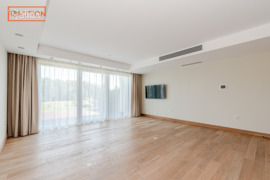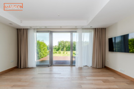 • bendras svetainės ir išskirtinės virtuvinės salos kambarys su aukštomis lubomis, panoraminiu langu bei 40 kv.m. terasa;