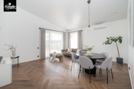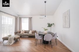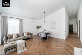- Įrengimui naudoti šviesūs tonai, kokybiškos medžiagos, įranga bei baldai. Erdvės neapkrautos, kambariai patogiai išplanuoti, tad leisdami laiką namuose jausitės komfortiškai ir patogiai.