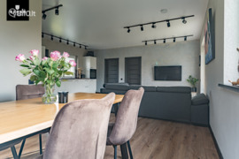 - Namas statytas ir įrengtas naudojant kruopščiai atrinktas kokybiškas medžiagas bei jaukų ir šiuolaikišką interjerą, įkvėptą supančios gamtos spalvų.