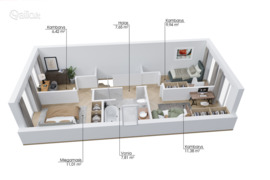 Kambarių sk.: 4 miegamieji, svetainė su virtuve, 2 san. mazgai.