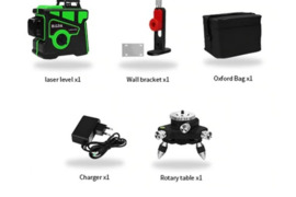 Šis lengvas savaime išsilyginantis lazerinis nivelyras su garsiakalbiu tinkamas naudoti statybose bei namuose montuojant gipso kartono plokštes, klijojant plyteles, tapetus bei atliekant kitus remonto darbus. Pasukamas 360 laipsnių kampu. Žali ir ryškūs lazerio spinduliai. Nivelyras yra tikslus ir praktiškas.
