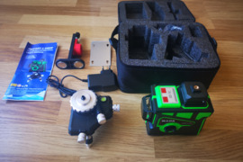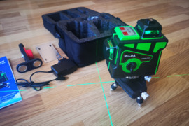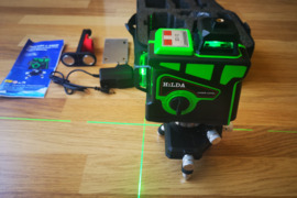 Parduodamas naujas žalias lazerinis nivelyras HILDA 12 linijų 3D. Pats išsilygina, 2 vertikalios ir 1 horizontali linija 360 laipsnių, iš viso 12 liniju, 3D, žalios spalvos . Garso signalizacija bei mirksėjimas kai nivelyras netolygus. Ličio jonų akumuliatorius.